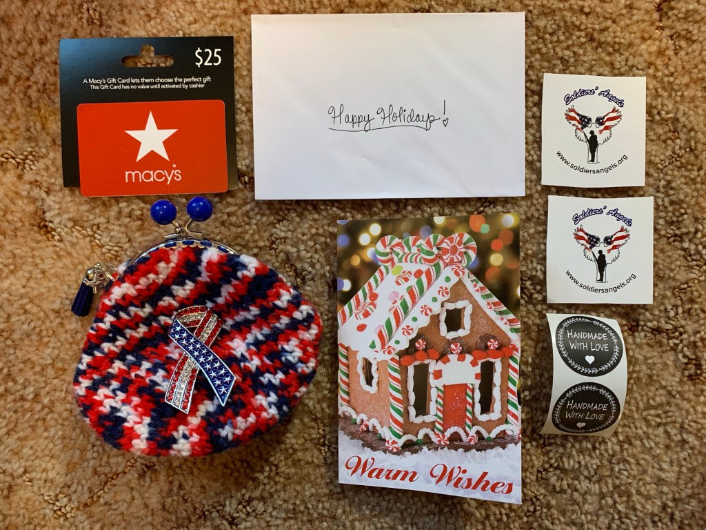 Hello Friends, Today I wanted to share with you my recent gifts for Soldiers’ Angels for The Women of Valor Group. Women of Valor are Women Caregivers (wife, girlfriend, mother, or other female relative) of post 9/11 wounded, ill, and/or injured service members and veterans. Soldiers’ Angels support them by sending these women gifts/care packages once a month to show their love, care, gratitude, and support for all that they do. I have been a Volunteer for Soldiers’ Angels for a year now but joined this group a few months ago. I wanted to share with you the gifts that I have sent so far to the Women Caregivers. If you sign up to Volunteer for this program, when you log into your Soldiers’ Angels account you can choose a Woman of Valor, when they sign up they write some things that they like or dislike to give you gift ideas for them. Based on that I think of something special to send them and try to also hand make them a crochet item as well. Attached to this post I’ll share pictures of the gifts that I have sent. If you like to know more about Soldiers’ Angels, know more about the Women of Valor Program, become a Volunteer, or for more information on this organization I’ll leave the link to the Soldiers’ Angels website below. Thank you for taking the time to read my blog post! Have a wonderful day! I’ll be back soon to share more crochet items!