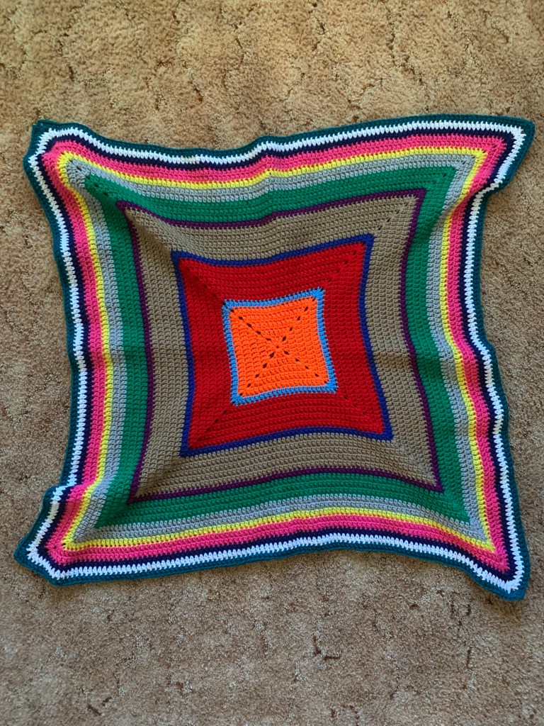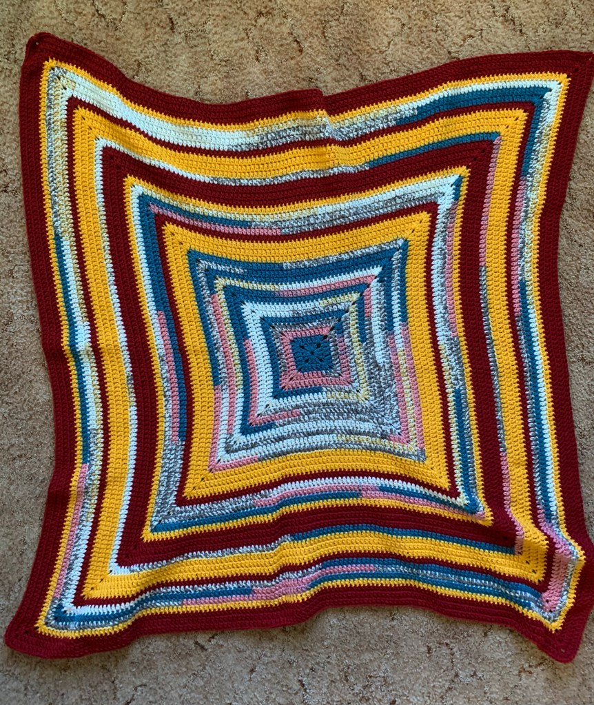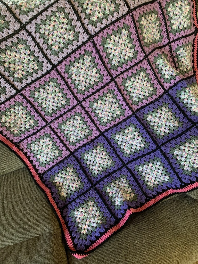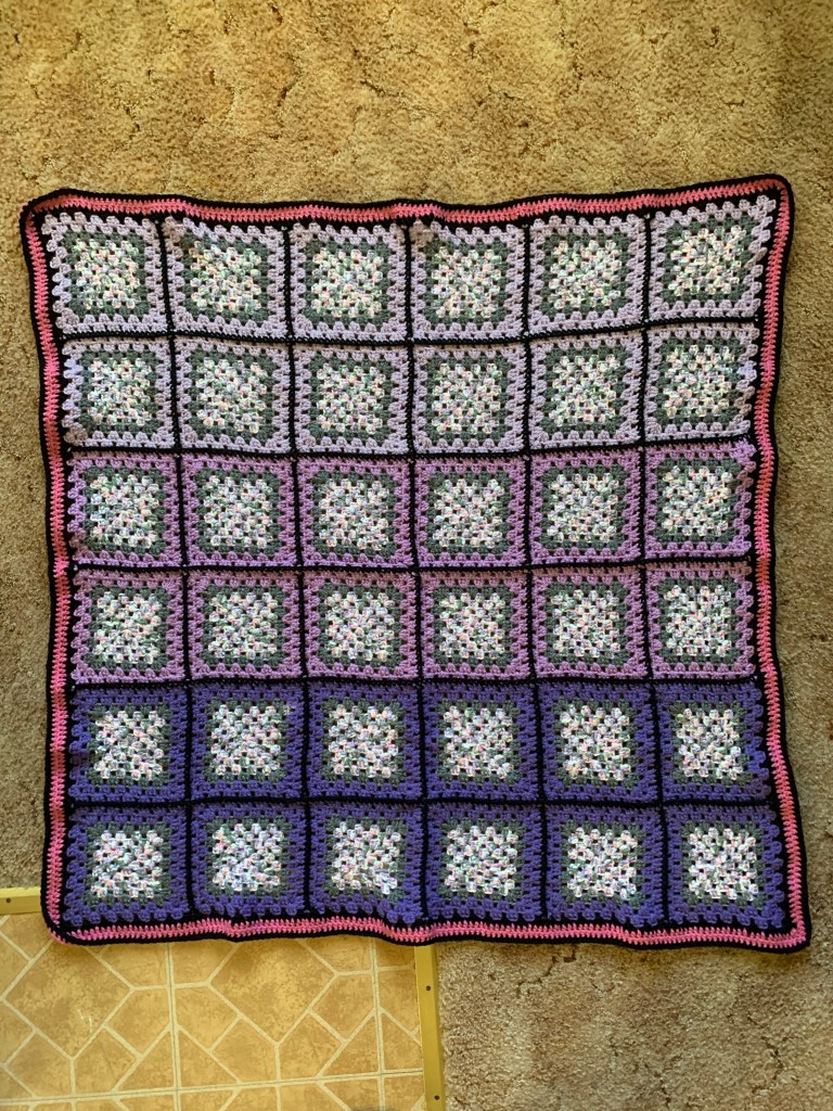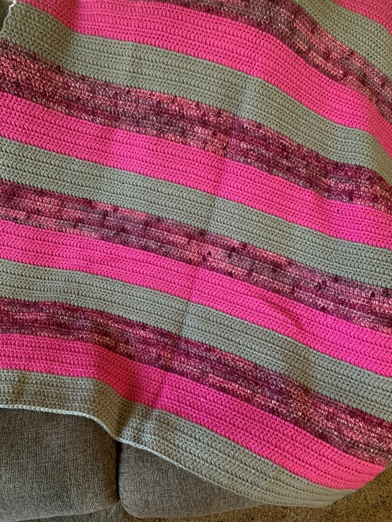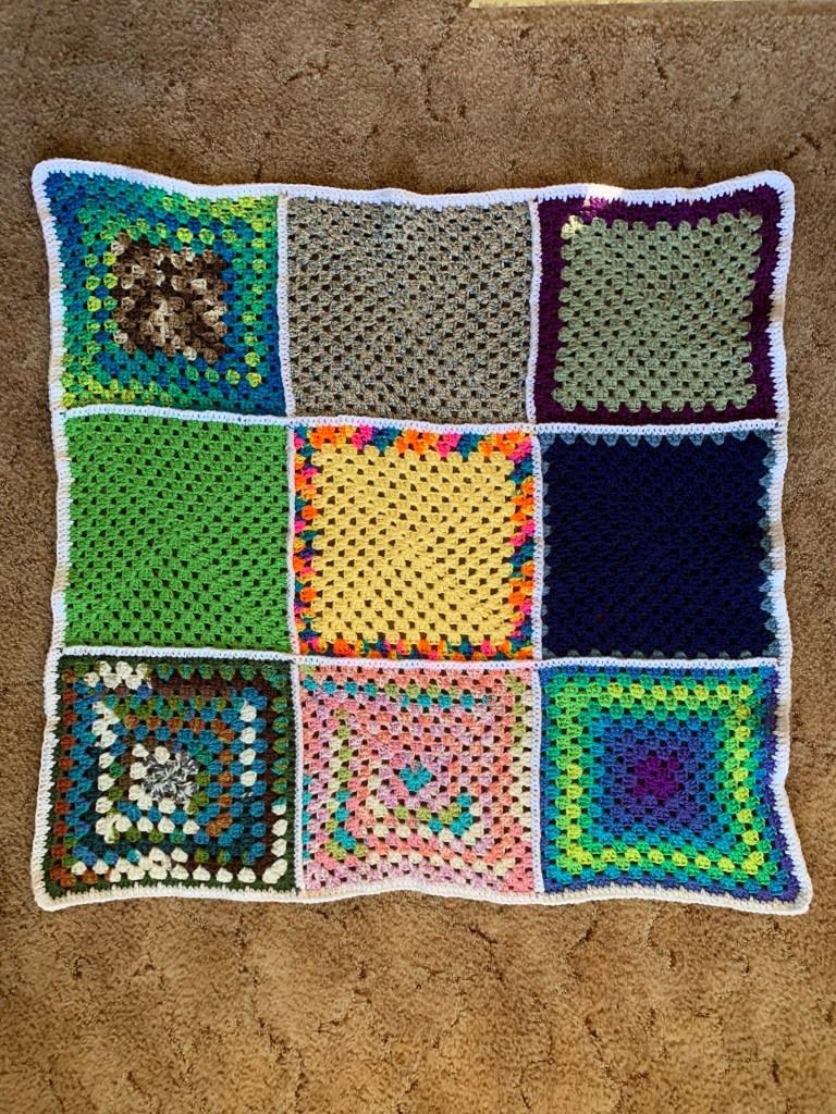 Also, on this Donation drop off to The RWJ Cancer Center, I included handmade crochet items, all made by me. Altogether I made 32 chemo hats, 1 hat and scarf set, 4 shawls, and lap blankets. Below I will include pictures of the lap blankets, and the gift baskets. I didn’t get to take pictures of all of the items this time, I apologize, but I hope that this post gives you inspiration to donate items and some ideas for donations or gift giving.