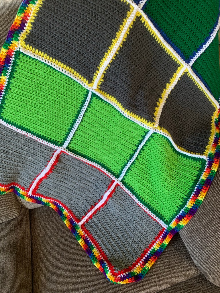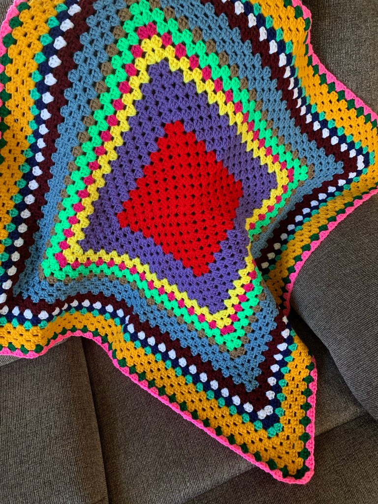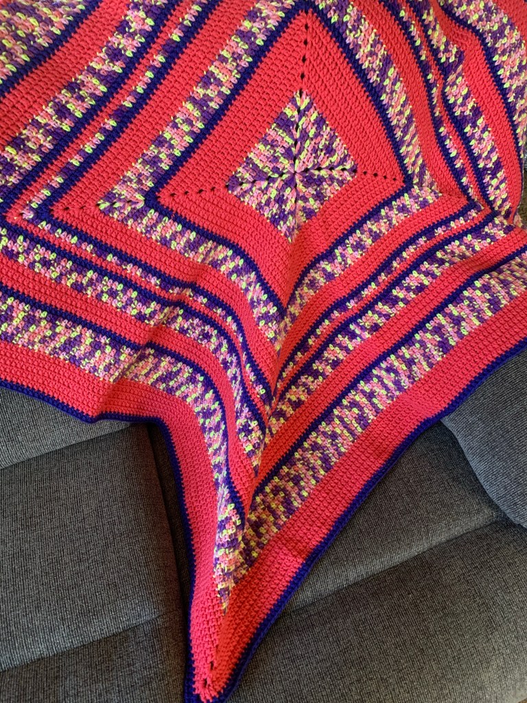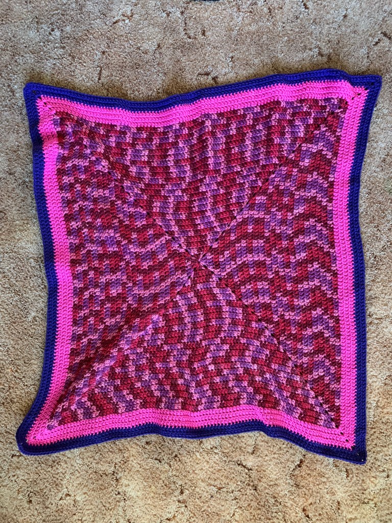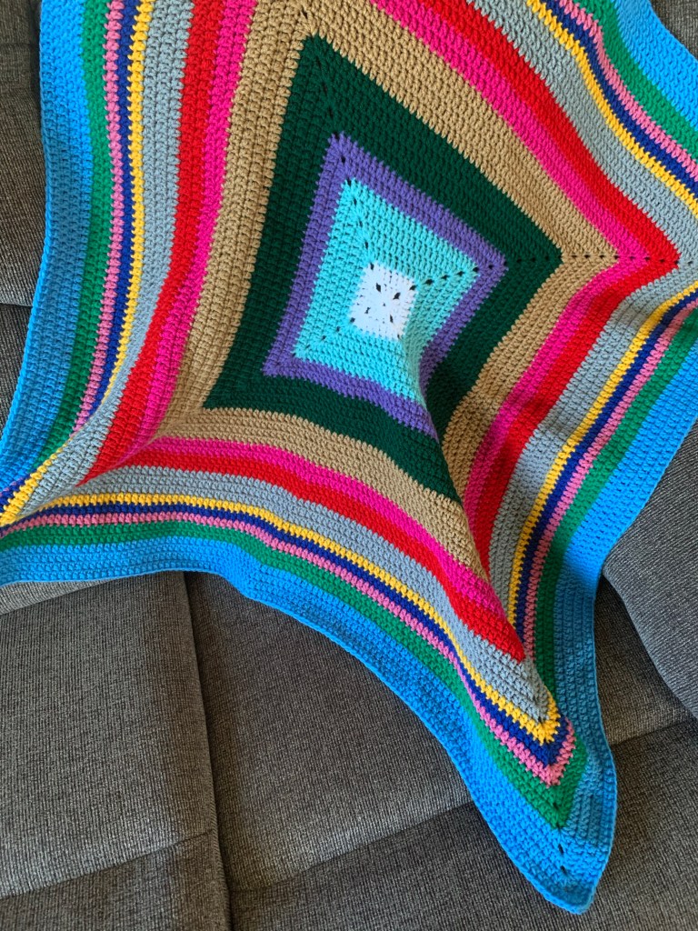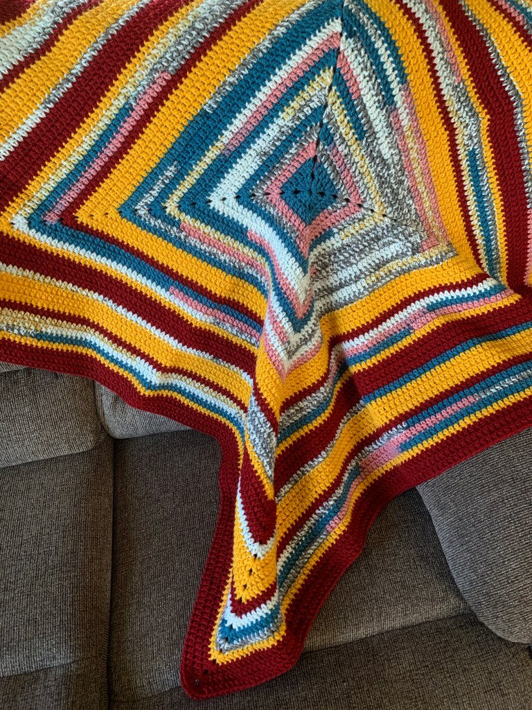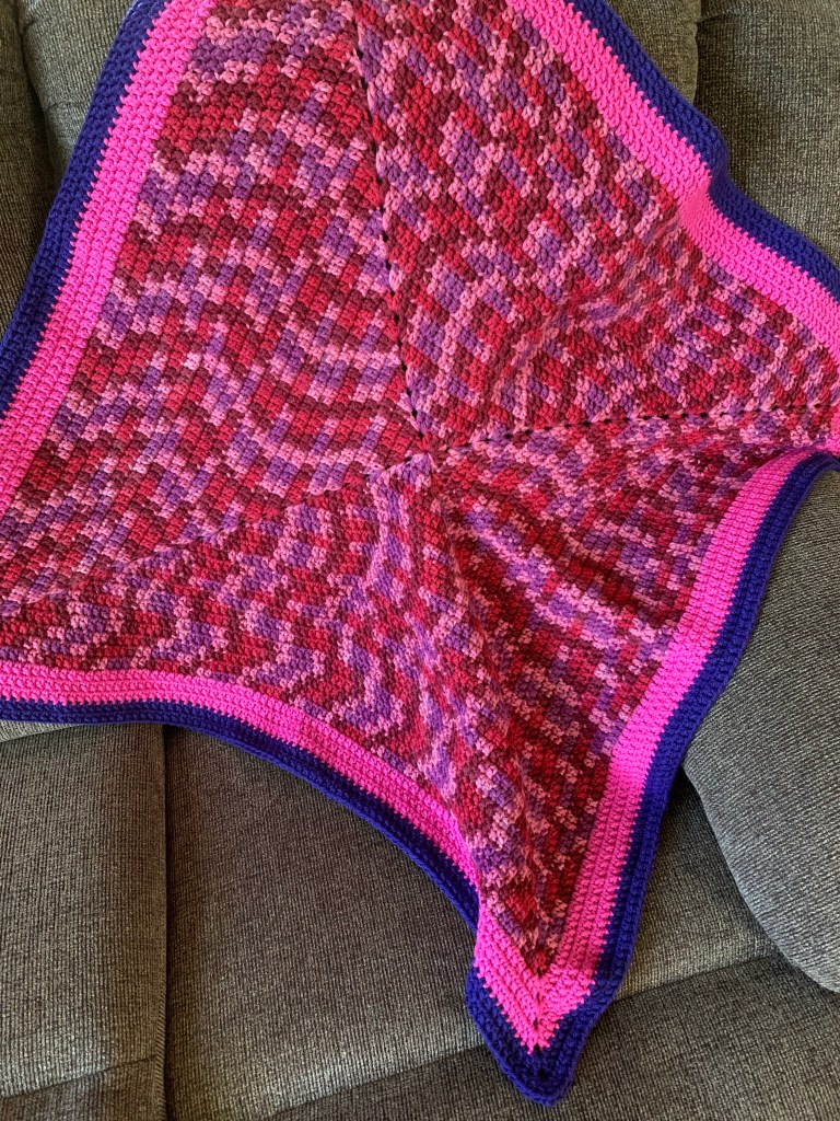 Also, on this Donation drop off to The RWJ Cancer Center, I included handmade crochet items, all made by me. Altogether I made 32 chemo hats, 1 hat and scarf set, 4 shawls, and lap blankets. Below I will include pictures of the lap blankets, and the gift baskets. I didn’t get to take pictures of all of the items this time, I apologize, but I hope that this post gives you inspiration to donate items and some ideas for donations or gift giving.