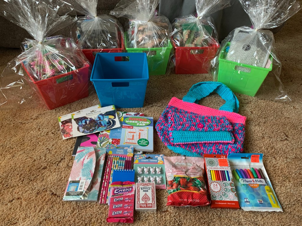 Hello Friends, Today I wanted to share Donations that I made to the Robert Wood Johnson University Hospital at Hamiltons’ Cancer Center, Spring 2021. I wanted to share this post even though I made these Donations last year to give you inspiration or ideas for gift baskets/donation ideas and also to share what I created and donated. The 6 gift baskets that I made included a handmade (by me) crocheted tote bag with matching case, butterfly scrapbook decorations, composition notebook, adult coloring book, word search book, sticky note set, number 2 pack of Easter pencils and pack of Easter erasers, chewing gum, bag of hard candies, deck of playing cards, 24 pack of color pencils, mini notepads, and a pack of writing pens. I made each gift basket with a plastic bin container from the Dollar Tree and also the clear basket wrap is from Dollar Tree. Aside from the handmade crochet items, the items were purchased from Dollar Tree, Ollie’s, or Walmart. You can put together very affordable gift baskets for friends, family, or to donate. Remember you don’t have to spent a lot of money to do a small act of kindness. *All of these items were purchased by me.* I hope this gives you ideas for gift baskets or just a small gift idea.