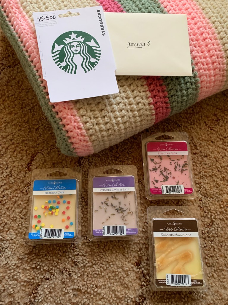 Hello Friends, Today I wanted to share with you my Donations to Soldier’s Angels for the month of February (2022). As a Volunteer for Soldier’s Angels I’m apart of four of their groups: Letter Writing, Cards Plus, Sewing and Crafting, and Woman of Valor. For February, I wrote two handwritten letters to Deployed Soldiers for my Letter Writing Group. For Cards Plus, I sent 40 Handmade Valentines to a Veterans Hospital in Florida. For my Sewing and Crafting Group, I made 20 Crochet Pacifier Clips. And for the Woman of Valor Group, Woman Caregiver, I sent her a Crochet Throw Blanket (made by me), wax melts, $25.00 Starbucks Gift Card, and a handwritten card. Below, attached to this post, I will add pictures of all of the items that I have written about in this post (except for the letters for Soldiers privacy). I have been a Volunteer for Soldier’s Angels since January 2021 and really enjoy every month participating in these different groups, picking out items, writing cards and letters, and sending handmade crochet items. I really love this organization and all of the love and support that they give and show to Soldiers, Veterans, and their families. If you would like to learn more about Soldier’s Angels Organization, Become a Volunteer, or Donate to them, I will leave to their website below. Thank you so much for taking the time to read my blog post! I hope that all of you have a wonderful day. Thank you so much for reading and supporting my blog! I will be back soon with more blog posts!