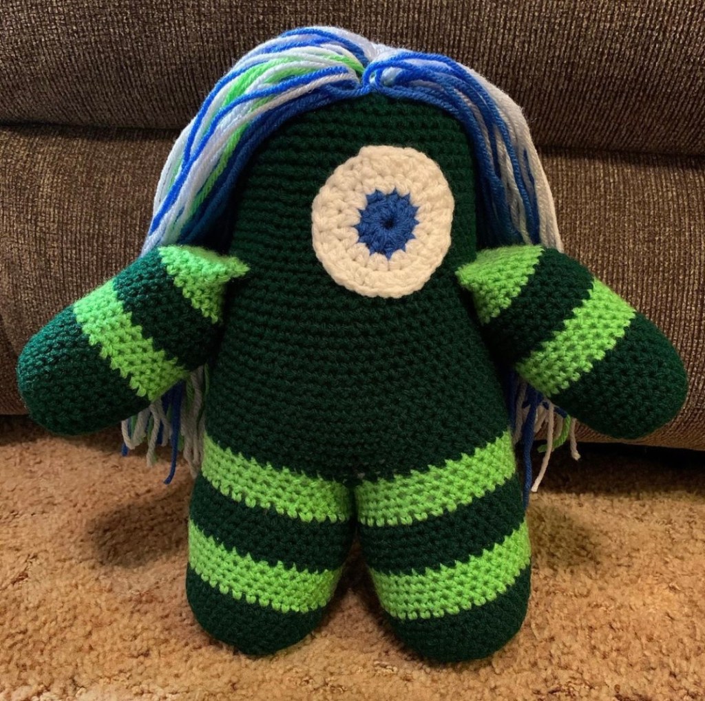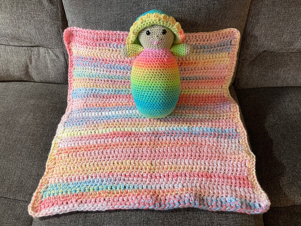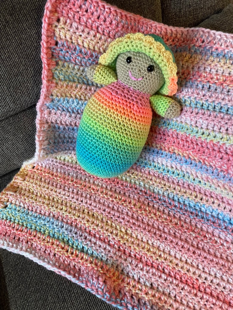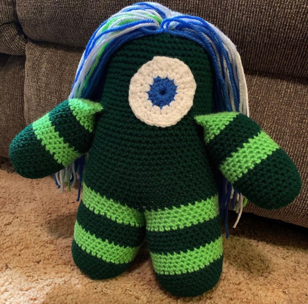 Hello Friends, I wanted to share pictures of the first Crochet Amigurumi that I have ever made. (In the past, I have made a Crochet Doll and Monster, that were requested by a friend for her two children, I’ll add pictures below, but I didn’t follow a pattern.) I saw this Swaddle Baby Amigurumi on my crochet friends YouTube Channel, it was just so cute, and I really wanted to try my hand at it. The pattern is available on Etsy and is by Valerie Phillips (ValeriesCuddlyCat). Her pattern is very easy to follow, very well written, and affordable! I highly recommend if you’re new and even old to crochet Amigurumi. The Swaddle Baby is such an adorable and great pattern! I love how mine came out and I have already gifted to a friend. I also made a little swaddle blanket to go along with the doll. I hope that you enjoy the pictures! Thank you so much for supporting my blog and following along! I hope that all of you have a wonderful day!