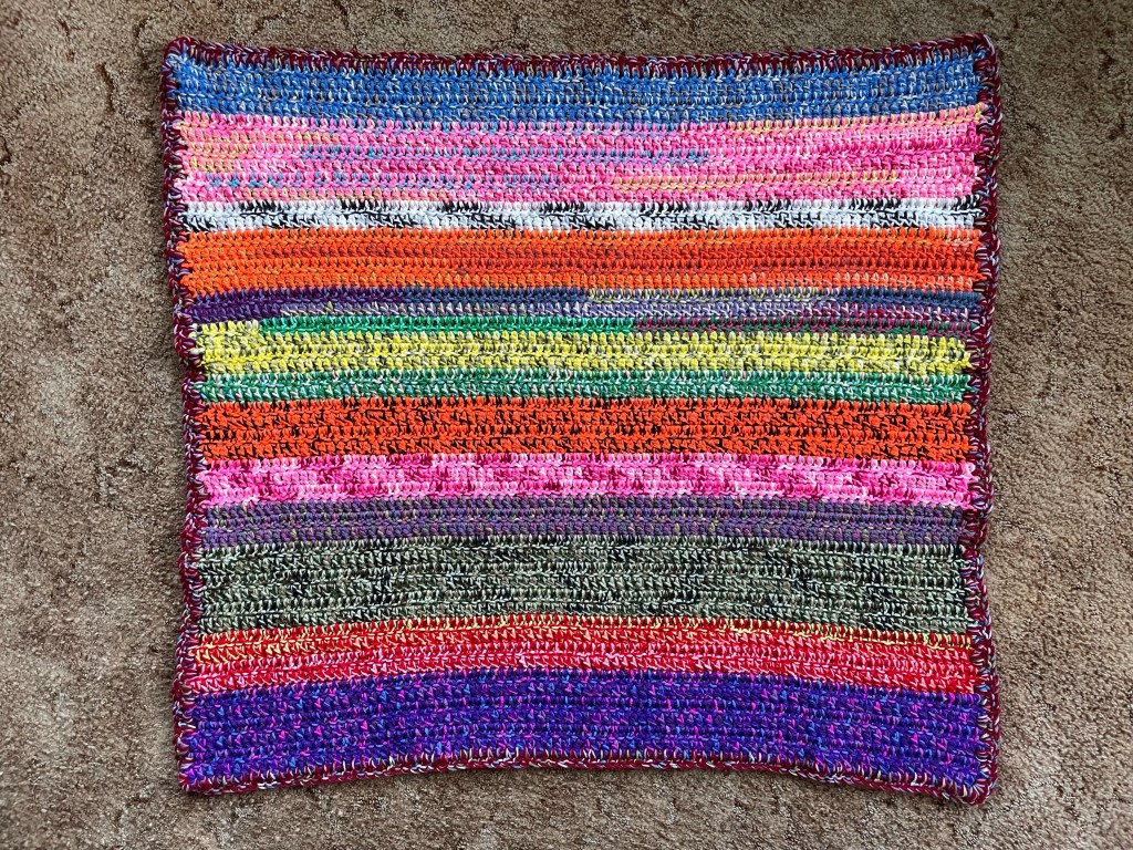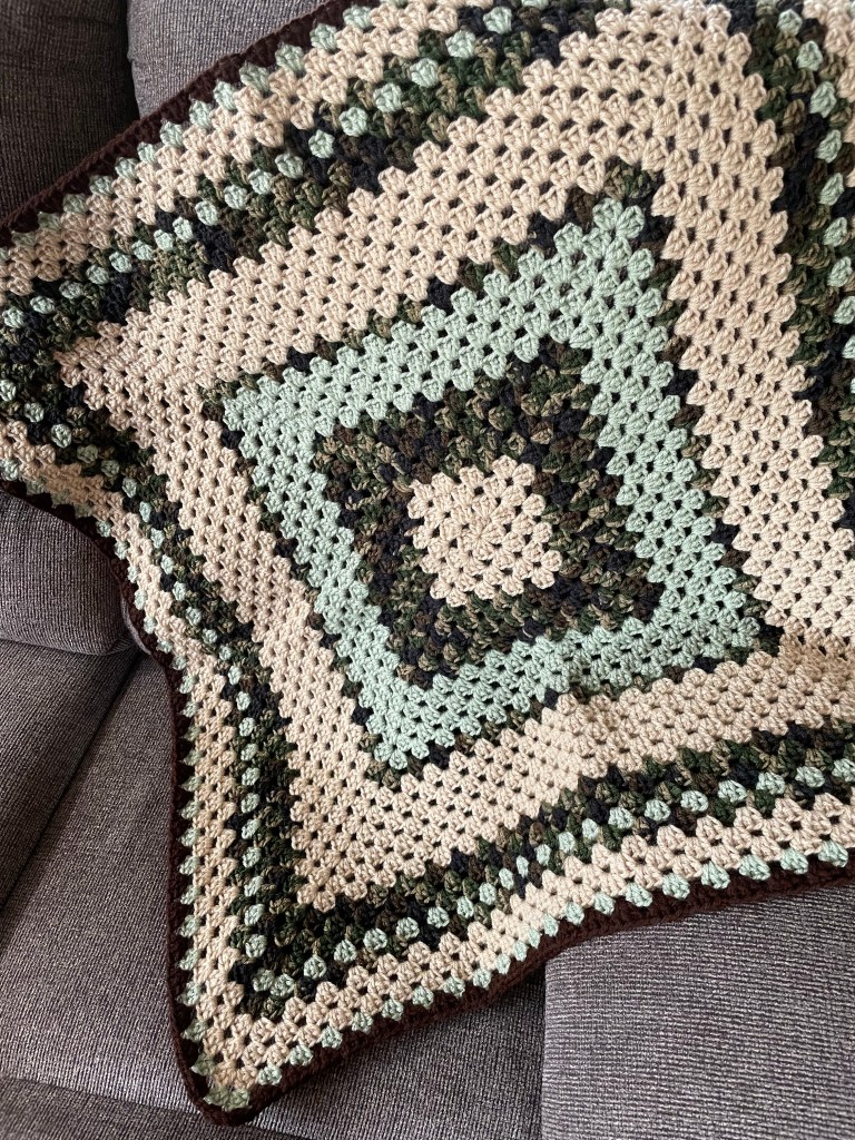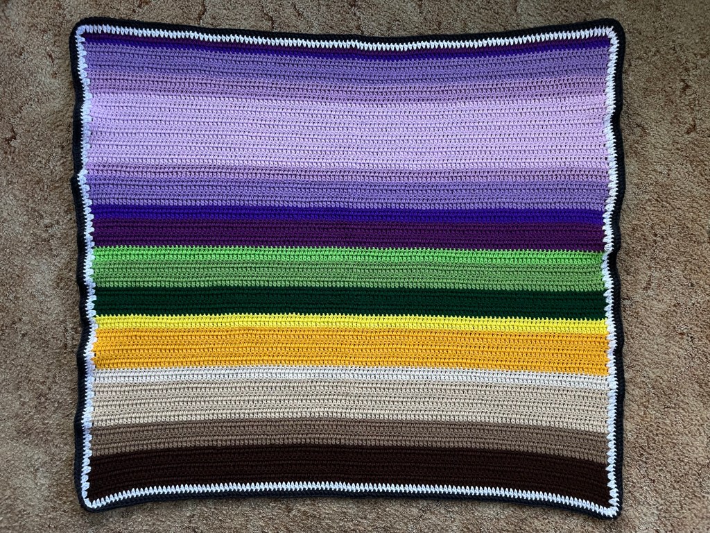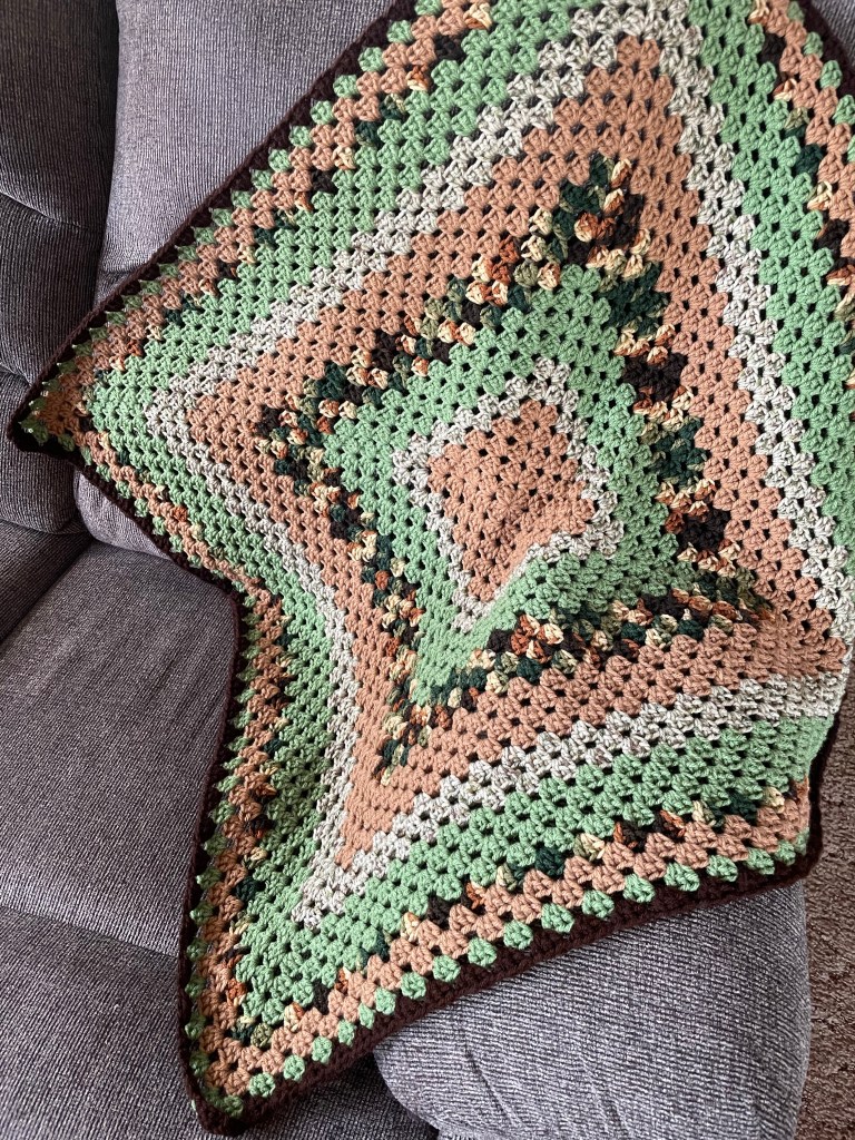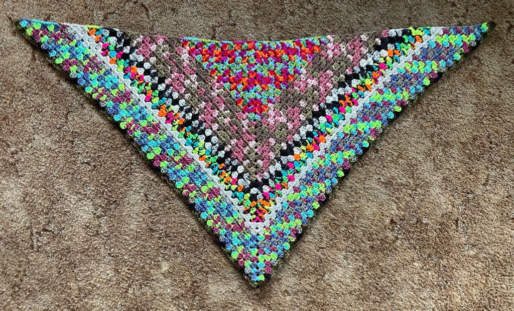 Crochet Granny Square Lap Blanket. Yarns: Verigated Camo was a Hobby Lobby I Love This Yarn (From their annual yarn clearance sale this past June 2022), matched with other solid worsted 4 weight acrylic yarns. Crochet Granny Square Lap Blanket. Yarns: Verigated is Redheart SuperSaver in the ColorWay Camo matched with solid worsted 4 weight acrylic yarns. Crochet Granny Square Lap Blanket. Yarns: Verigated is Redheart SuperSaver in Woodsy matched with solid worsted 4 weight acrylic yarns. Also, has some of the Hobby Lobby Verigated Camo (same as other blanket) from their annual yarn clearance sale! Crochet Granny Square Lap Blanket. Yarns: Verigated Yarn is from Hobby Lobby I Love This Yarn (unsure of ColorWay) matched with solid worsted 4 weight acrylic yarns. Double Crochet Lap Blanket. Yarns: Solid Color Worsted 4 Weight Acrylic Yarns. Crochet Granny Square Lap Blanket. Yarns: Verigated Hobby Lobby I Love This Yarn (unsure of ColorWay) matched with solid worsted 4 weight acrylic yarns. Crochet Granny Square Lap Blanket. Yarns: Verigated Herrschners Worsted 8 Yarn (ColorWay is Bouquet, I believe it’s discontinued) matched with solid worsted 4 weight acrylic yarns. Double Crochet (2 Strands Held Together) Lap Blanket. Yarns: Verigated ColorWays were 2 skeins of Premier Nordica Yarns (From Hobby Lobby Annual Yarn Clearance 2021) matched with solid gray worsted 4 weight acrylic yarn (I believe Lion Brand Pound of Love). Crochet Granny Square Lap Blanket. Yarns: Verigated Yarn is *Discontinued* Redheart Gumdrop Yarn in the ColorWay Rock Candy matched with worsted 4 weight acrylic yarns. Crochet Granny Square Lap Blanket. Yarns: Verigated is (I believe) Premier Everyday Yarn in Orange and White, old mystery bag from Premier Yarns, and Redheart SuperSaver in the ColorWay Fall, matched with solid worsted 4 weight acrylic yarns. Double Crochet (2 Strands Held Together) Lap Blanket. Yarns: Hobby Lobby Yarns (from their annual clearance yarn sale 2021) Baby Bee Darling Dear in the ColorWay MustHave Mint matched with solid Baby Bee Sweet Delight Yarn in the ColorWay Celery. Crochet Granny Square Lap Blanket. Yarns: Verigated is from Herrschners in Worsted 8 Halloween ColorWay, matched with worsted 4 weight acrylic yarns. Double Crochet (2 Strands Held Together) Lap Blanket. Yarns: Scrap Worsted 4 Weight Acrylic Yarns. Double Crochet Lap Blanket. Yarns: Scrap Worsted 4 Weight Acrylic Yarns.Crochet Granny Squares Lap Blanket. Yarns: Verigated is Redheart SuperSaver in the ColorWay Americana matched with solid worsted 4 weight acrylic yarns. Crochet Granny Square Lap Blanket. Yarns: Verigated is in Redheart SuperSaver in the ColorWay Pink Camo, matched with solid worsted 4 weight acrylic yarns. Crochet Granny Shawl (Pattern by Clare, CrochetByClare on YouTube, formerly BobWilson123). Yarns: from Hobby Lobby’s 2021 Annual Yarn Clearance Sale. Lion Brand IceCream Cotton Blend in various yarn ColorWays. Crochet Granny Shawl (Pattern by Clare, CrochetByClare on YouTube, formerly BobWilson123). Yarns: Scrap Yarns from my Yarn Stash. Crochet Granny Shawl (Pattern by Clare, CrochetByClare on YouTube, formerly BobWilson123). Yarns: Verigated in Redheart SuperSaver in the ColorWay Zebra, matched with solid worsted 4 weight acrylic yarns.