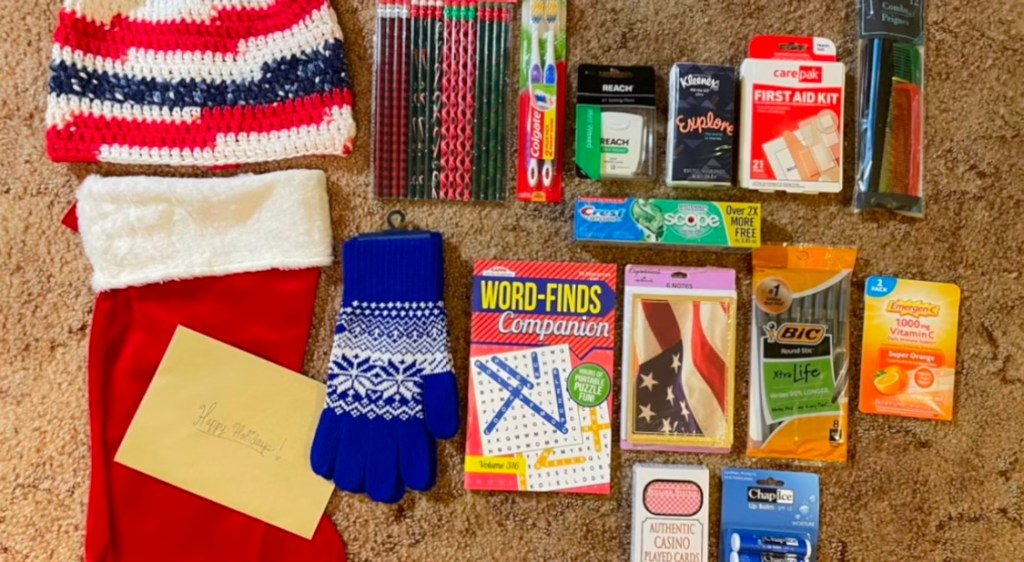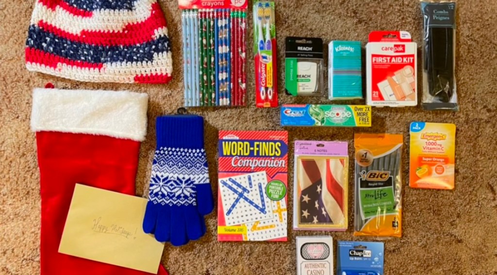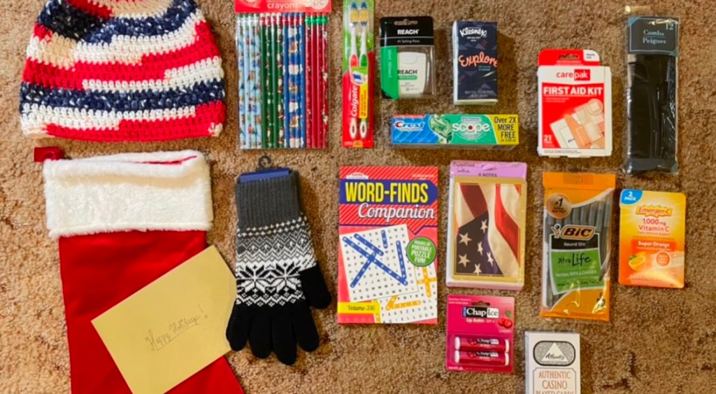 Hello Friends, Today I wanted to share Christmas Stockings that I donated to Soldiers’ Angels for Christmas 2022. This is my second year participating in The Soldiers’ Angels Stockings Christmas Drive and again I really enjoyed purchasing the stockings, items for the stockings, and crocheting beanies for them! For 2022, Soldiers’ Angels had a goal of collecting 40,000 and again this year surpassed their goal and in total collected 44,588 Christmas Stockings for Soldiers and Veterans worldwide! This is so amazing and I’m so thankful that I was able to participate in this event again this year! I put together four Christmas Stockings for the Christmas 2022 Holiday Season! I purchased the Christmas Stockings from Michaels Craft Stores and also all of the items in each stocking were purchased from the Dollar Tree. The Stockings that I put together included: a handwritten Christmas (Holiday) Card, USA style Crochet Beanie Hat, 16pk #2 Holiday Pencils, Winter Gloves, 2pk ToothBrushes, Dental Floss, Travel Tissue Pack, Crest With Scope ToothPaste, Mini First Aid Kit, 12pk Hair Combs, 2pk Vitamin C, 8pk BIC BallPoint Pens, USA Flag Blank Cards, 1pk Playing Cards, WordSearch Book, and 2pk ChapStick. I also included Stamps and USA Stickers in their Holiday Cards. All items were purchased and hand picked by me. I will attach pictures below to this post of the Christmas Stockings and items that I put in them! I had so much fun putting these together and hope to be apart of the next Christmas Stocking Holiday Drive for Christmas 2023! I will link below the website to Soldiers’ Angels if you would love to learn more about this wonderful and amazing organization. I’m so thankful for our Soldiers, Veterans, and their families and for all that they do for our country! January 2023, will be 2 years of me Volunteering for Soldiers’ Angels, and I plan to continue to Volunteer for them! Thank you so much to Soldiers’ Angels for letting me be apart of your team! I hope that you enjoy the pictures!