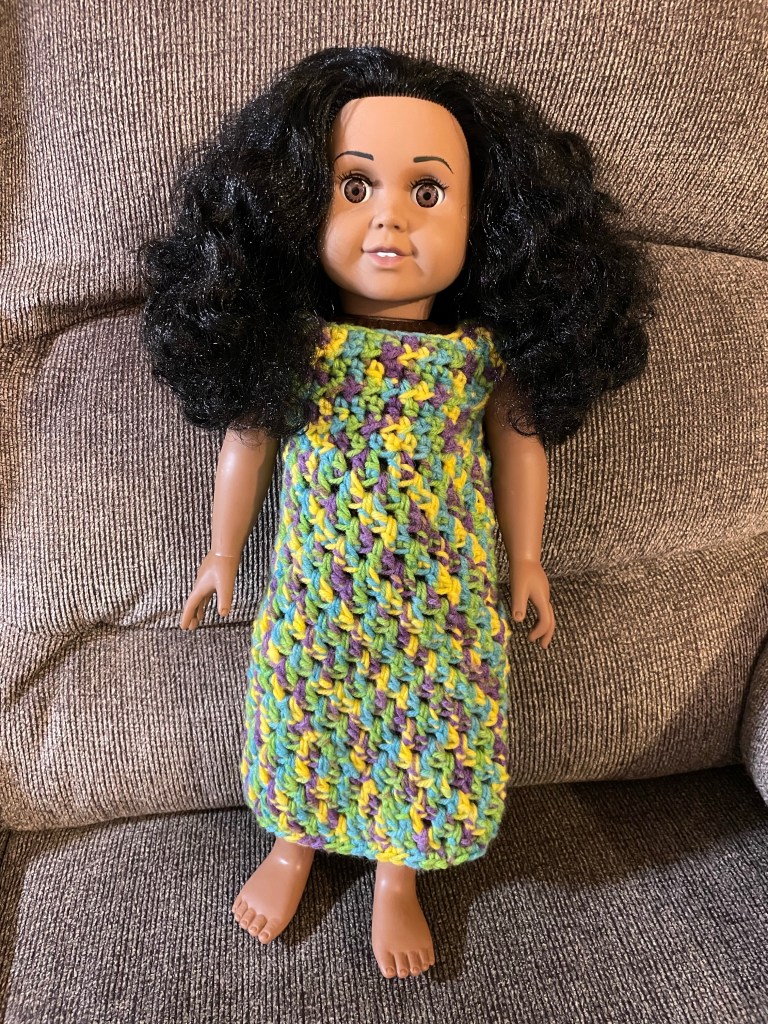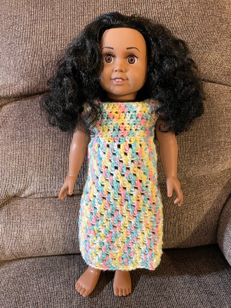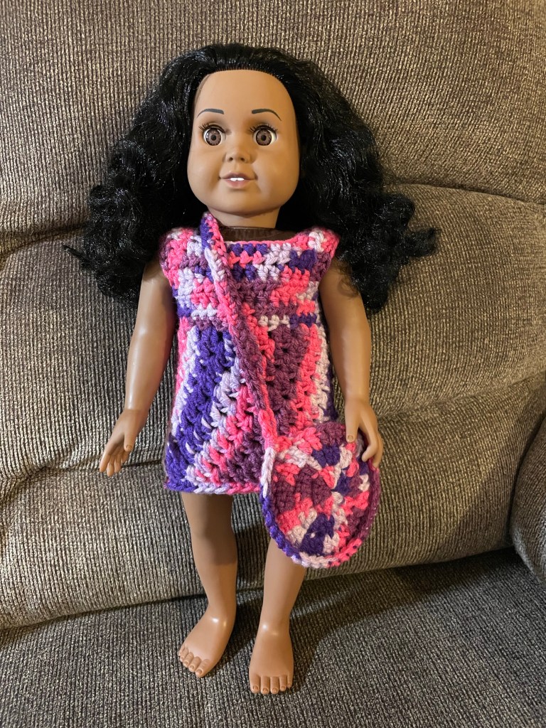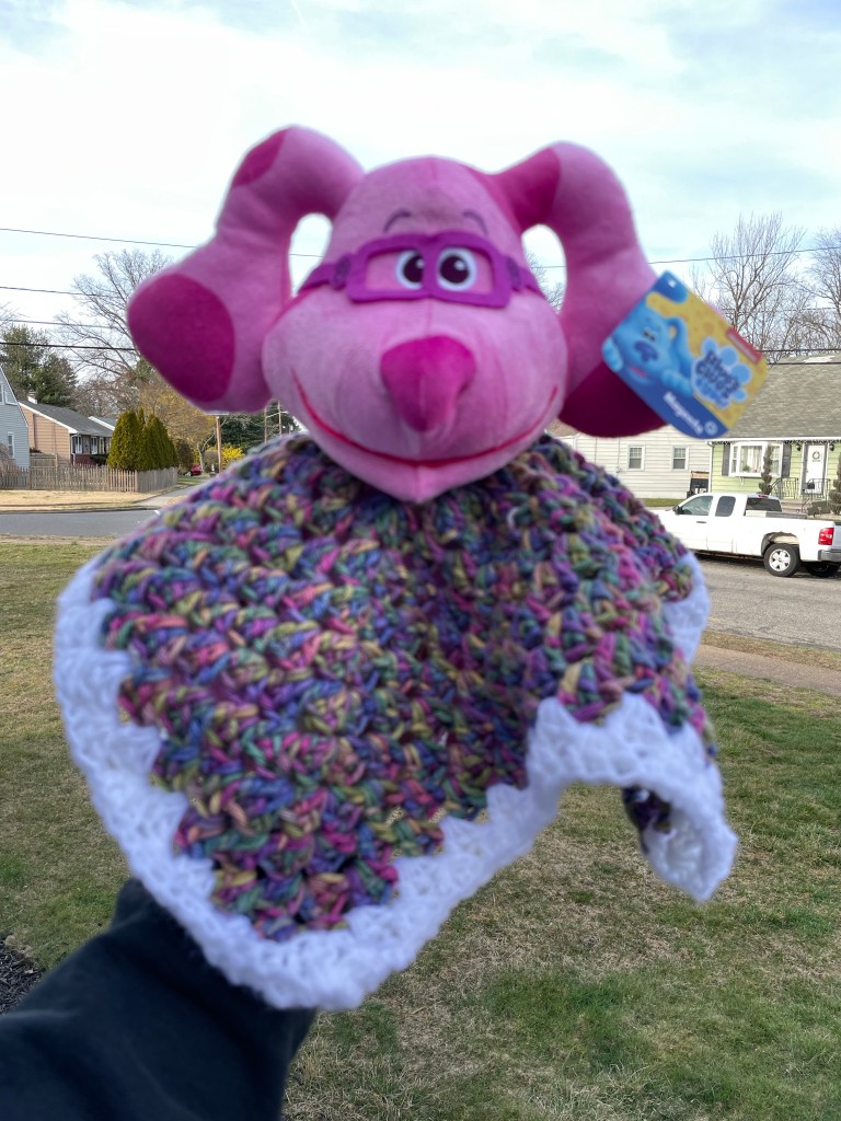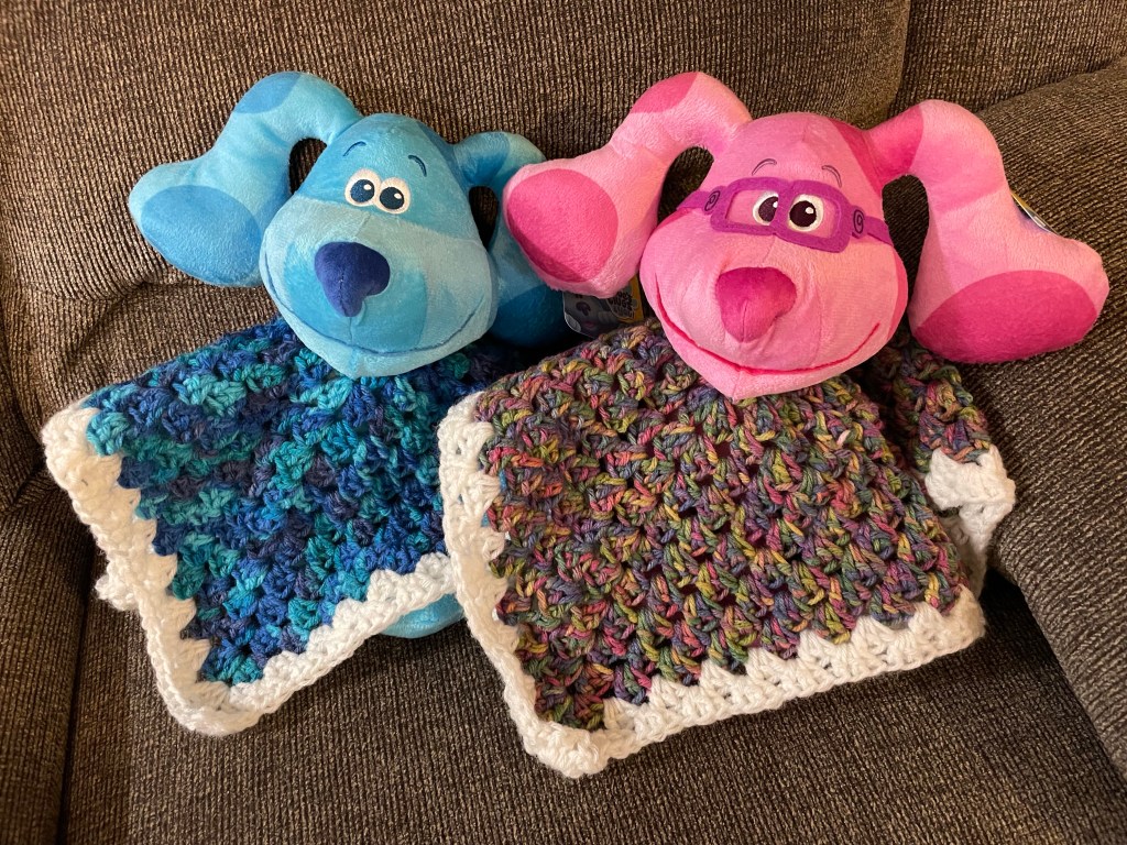 Hello Friends, Today I wanted to share with you gifts for my friend’s grandkids. The first gift that I want to write about is the 18 inch doll. The 18 inch doll I purchased from My Local Hobby Lobby, was originally $19.99 and on clearance for $5.49. This 18 inch doll was from Hobby Lobby’s Springfield Collection and is the Madison Doll. The crochet dresses that I made for this doll is the Candy Corn Dress Pattern by Pamela – Pamela’s Adoring Crochet (Adoring Doll Clothes), all of these dresses are the same pattern however with some dresses I just added extra rows to make the dress longer. I used worsted 4 weight acrylic yarns for these doll dresses. Pamela has the most beautiful 18 and 14 inch crochet doll clothes patterns, they’re very easy to follow, with pictures as well. I have purchased her USB Drive with all of her 18 inch doll patterns and also additional doll patterns that she has put out. I will link her etsy shop below if you would like to check it out. The next two items that I made for my friend’s grandkids are crochet loveys, this item is one of my favorites to make and is a wonderful gift idea. For these two loveys I used Blues Clues Stuffies that I purchased from Five Below, Blue and Magenta. The crochet lovey pattern that I use is by Zee, ZeldaNRJ3 on YouTube, I will link her YouTube Channel below! I really love this pattern and make it quite often! These loveys are just so adorable and like I mentioned make great gifts! I really love making crochet items whether it be for family, friends, or donate, and these items were so fun to make! I will add pictures below of these items that I mentioned in this blog post! Thank you so much for taking the time to read my blog and I hope that you will continue to follow along and see what else I’m up to! Have a wonderful day and be back soon with more blog posts!