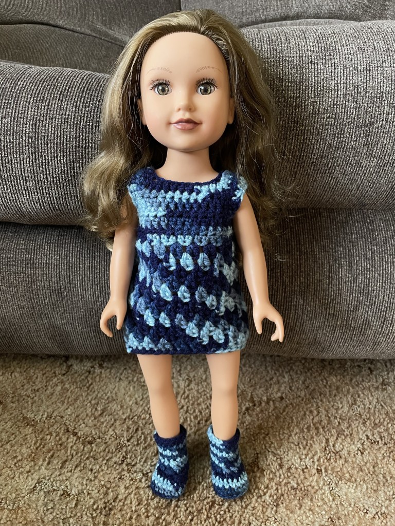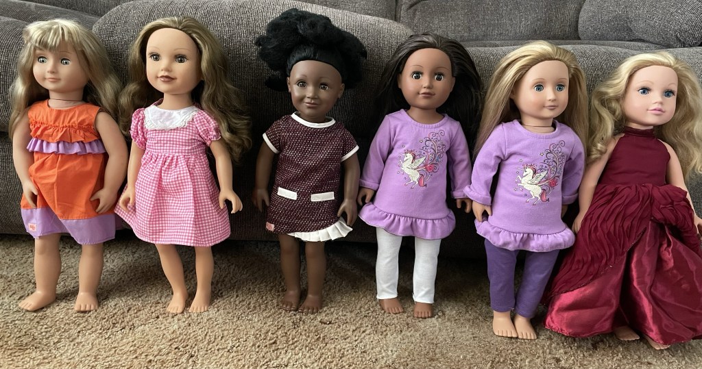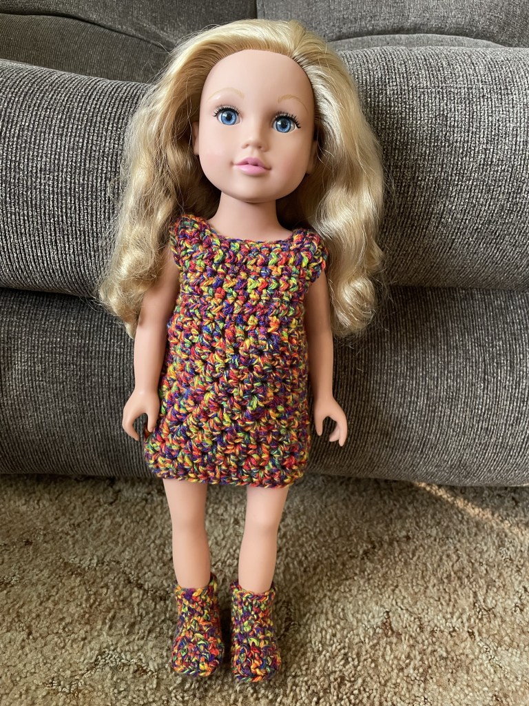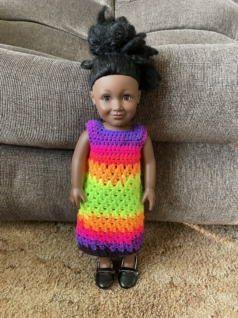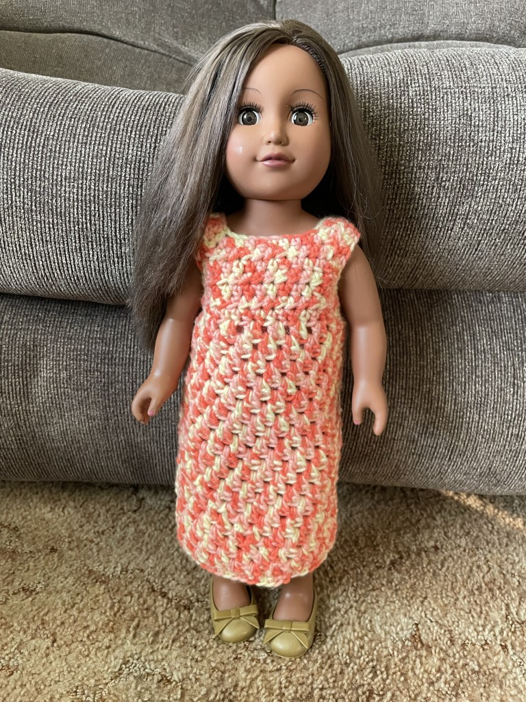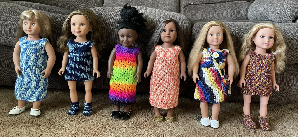 Hello Friends, Today I would like to share these six 18 Inch Dolls that I purchased from ebay. I just love and think that 18 Inch Dolls are so adorable! I purchased, cleaned, fixed these six dolls up, and made them all crochet 18 Inch Doll Dresses. I think that all came out so beautiful. The Crochet Doll Dress Pattern is by Pamela from Pamela’s Adoring Crochet. Pamela’s 18 and 14.5 Inch Doll Patterns are just so beautiful. I will have Pamela’s Etsy Shop and this specific Crochet Doll Dress Pattern linked below. I used the same crochet doll dress pattern for all of the dresses, some I just made the bottom of the dress longer than the others. I donated these six 18 Inch Dolls to a Local Nursing Home, these dolls were given out as prizes for Bingo Night Winnings at The Local Nursing Home. I really love how beautiful these 18 Inch Dolls after I fixed them up. I hope that you enjoyed this Blog Post. If you are looking for 18 and/or 14.5 Crochet Doll Dress/Outfit Patterns please go check out Pamela’s Etsy Shop, her crochet doll patterns are just so gorgeous, they are very well written and easy to do, and Pamela is always there if you need any help with her crochet patterns. I hope that all of you have a wonderful day! As always, thank you so much for all of your love and support with My Crochet, Blog, Volunteer Work, etc. it means so much to me! Be back soon sharing more Blog Posts of all that I am up to!