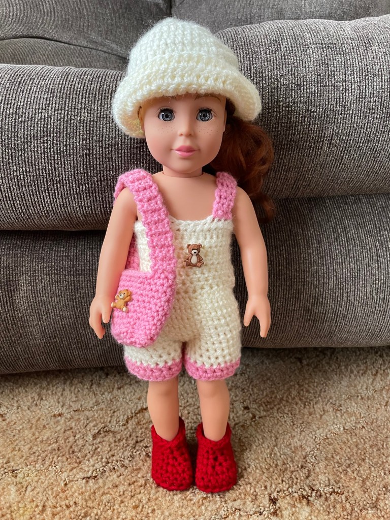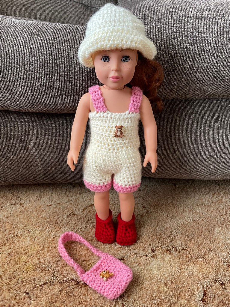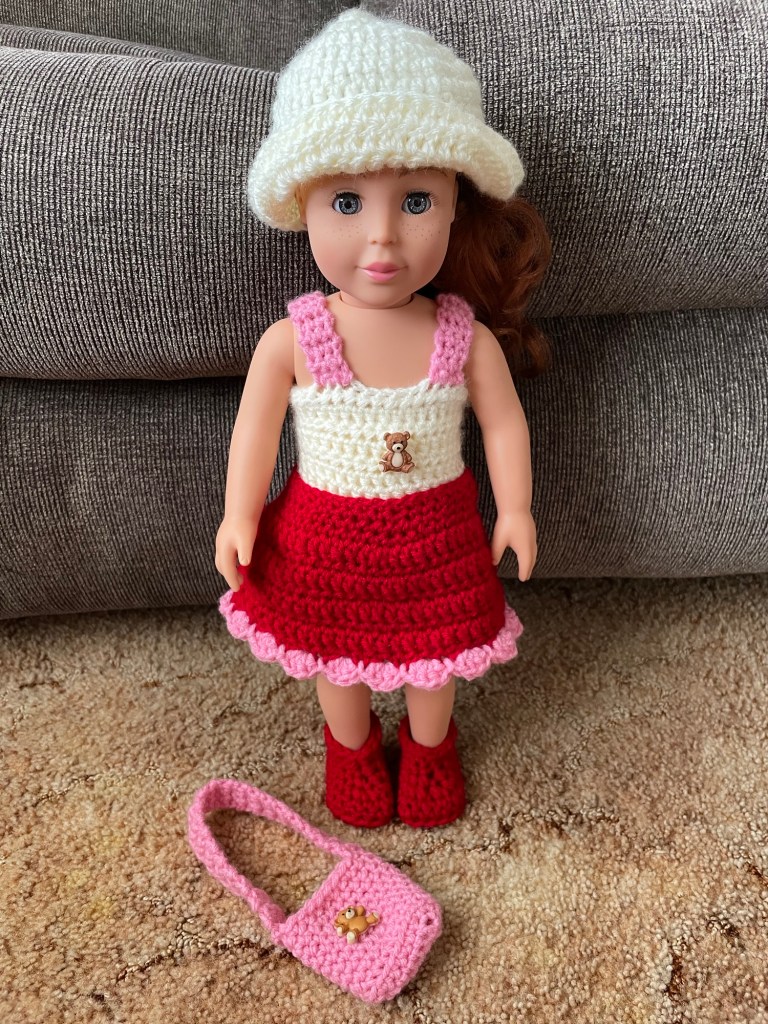 Hello Friends, Today I wanted to share with you this sweet crochet Valentine’s Outfit that I made for My 18 Inch Adora Doll. (Side Note: I added bear buttons from Hobby Lobby to My Doll Outfit and her purse instead of the little crochet hearts that she added.) You can always add your personalize touches like this to your crochet items. I think these little buttons, like the ones I used, just add a cute personal & unique touch to them. You can also switch up the yarn colors as well. This 18 Inch Valentine’s Crochet Pattern is by Pamela, her Etsy Shop where you can purchase this and all of her other crochet 18 and 14 Inch Doll Patterns is called “AdoringDollClothes.” All of Pamela’s Crochet Doll Patterns are very well written and easy to understand, she even adds pictures in her patterns to help you as well. I purchased the Flash Drive of her Crochet Doll patterns a couple years back, have made several of her patterns, and I just love them all so much! Pamela and I have met (online) through crochet and youtube, and I just wanted to add that she’s the sweetest lady and friend. Also, she’s always there if you have any questions/concerns/need help with the crochet patterns. I look forward to making many more of her crochet doll patterns and will show them here on my website as I do! I will have Pamela’s YouTube Channel and Etsy Shop Linked Below in case you want to check them out!