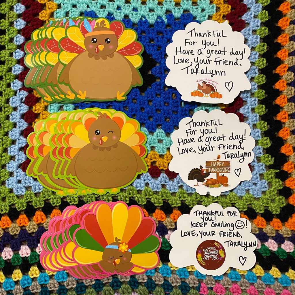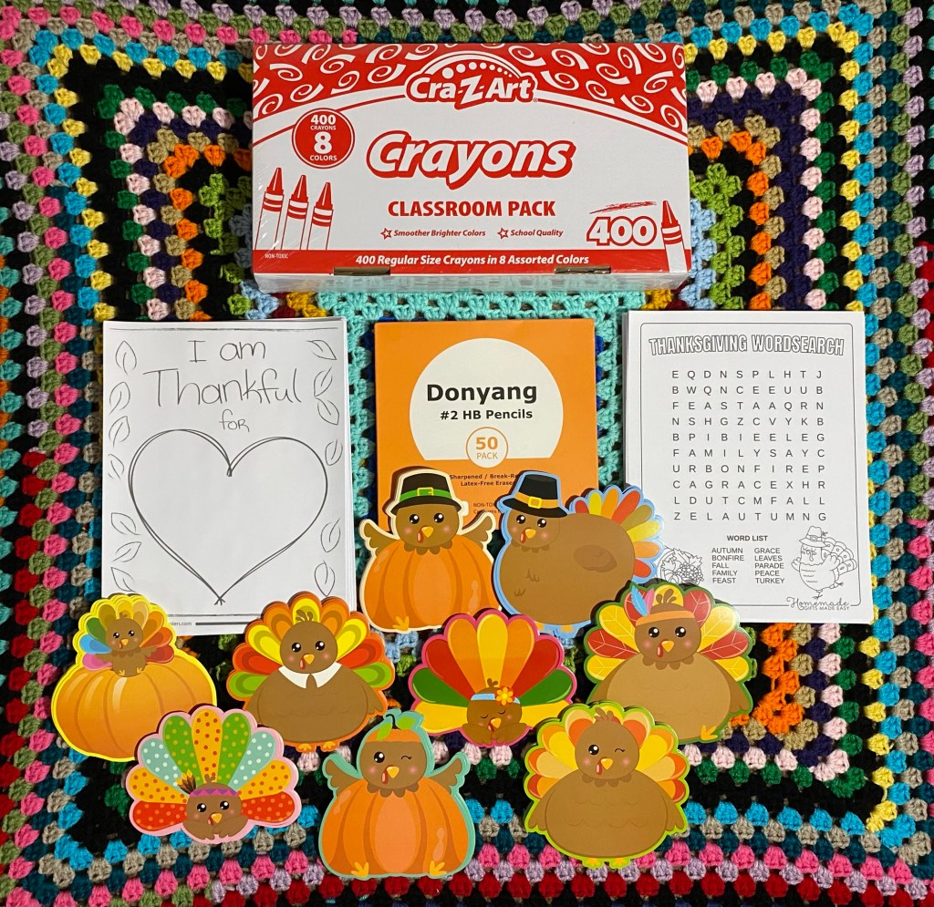 Hello Friends! Today I wanted to share with you Thanksgiving Cards that I made & gifts for donation for The 2024 Thanksgiving Holiday! For The Thanksgiving Cards, I believe that there were a little over 100 Cards in total, I used paper turkey cut outs & Thanksgiving Stickers that I purchased from Amazon. On each turkey paper cut out I handwrote out a special note and added a sticker(s) on them. I still think that a handwritten note/letter/card is one of the most special, unique, personal, and meaningful sentiments that you can do for someone to let them know that you care. With the cards that I made, I also printed out (FREE Printables from Pinterest) Thanksgiving Wordsearch and Coloring Pages. I purchased this huge 400 pack of crayons and a 50 pack of #2 wooden pencils from Amazon. These Thanksgiving Cards and items will be handed out at a Thanksgiving Dinner that one of my local churches is putting on for refugee families. I think that this is very special and am so happy that again I got to be apart of something much bigger than me. I really love making handwritten notes/letters/cards for others, especially on holidays/special occasions/or just because.